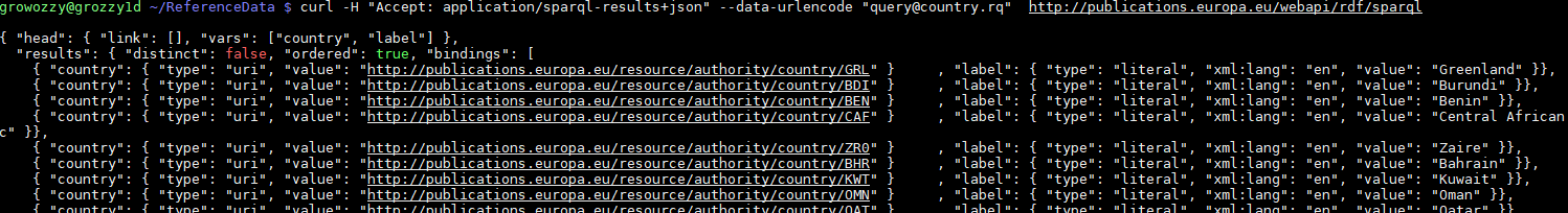 The reponse for such country.rq file is (curl command: curl -H "Accept: application/sparql-results+json" --data-urlencode "query@country.rq" http://publications.europa.eu/webapi/rdf/sparql)